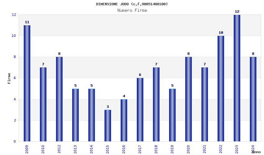 | Anno | Firme | Importi | Media | Naz. | Reg. | Prov. | Comu. |