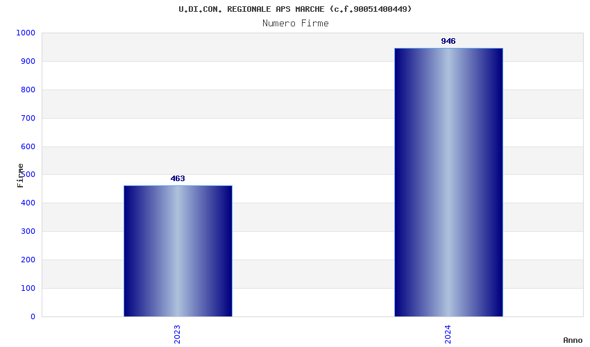 | Anno | Firme | Importi | Media | Naz. | Reg. | Prov. | Comu. |