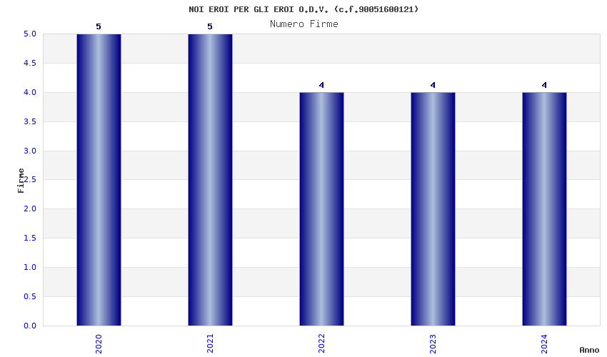 | Anno | Firme | Importi | Media | Naz. | Reg. | Prov. | Comu. |
