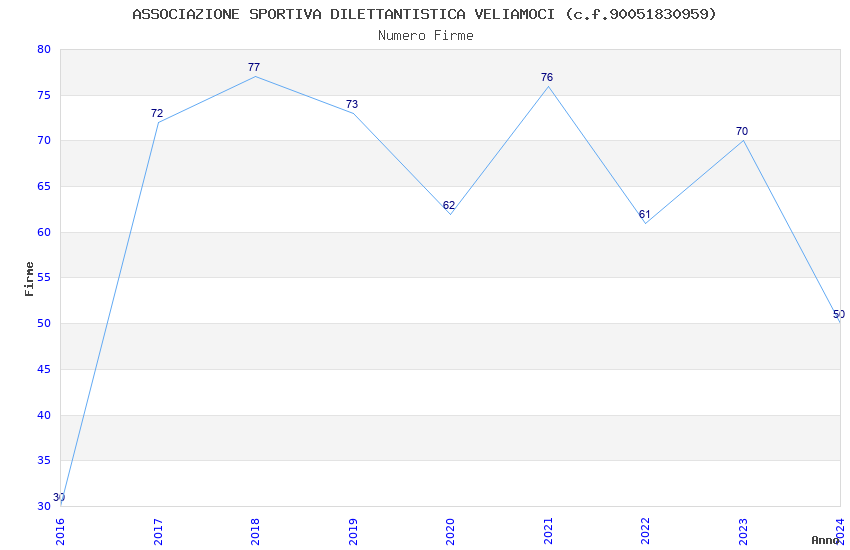 | 2021 | 76 | 2.435,13 | 32,04 | 20.734 | 388 | 30 | 10 |