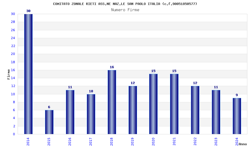 | Anno | Firme | Importi | Media | Naz. | Reg. | Prov. | Comu. |