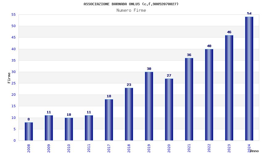 | Anno | Firme | Importi | Media | Naz. | Reg. | Prov. | Comu. |