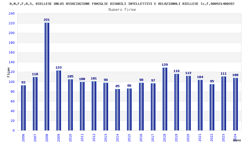 | Anno | Firme | Importi | Media | Naz. | Reg. | Prov. | Comu. |