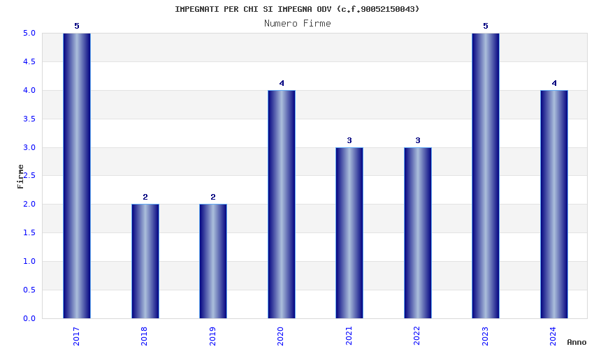| Anno | Firme | Importi | Media | Naz. | Reg. | Prov. | Comu. |