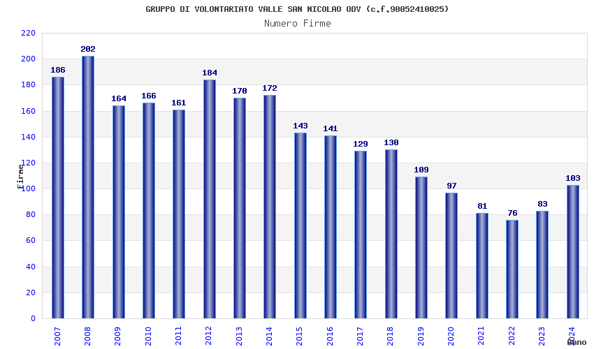 | Anno | Firme | Importi | Media | Naz. | Reg. | Prov. | Comu. |