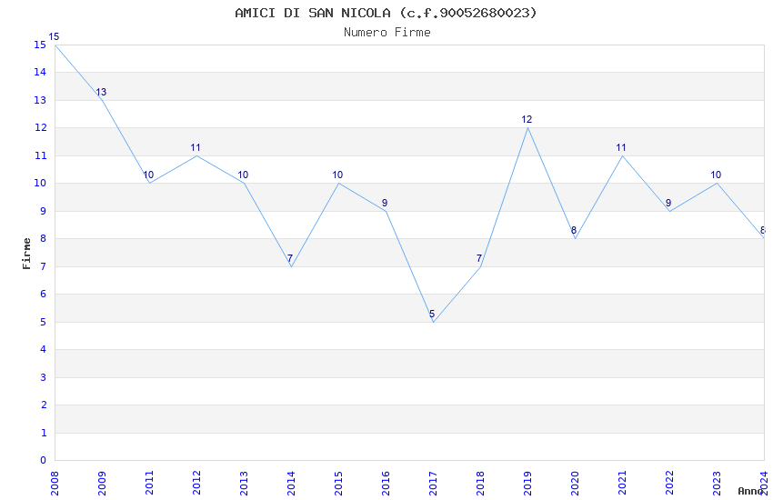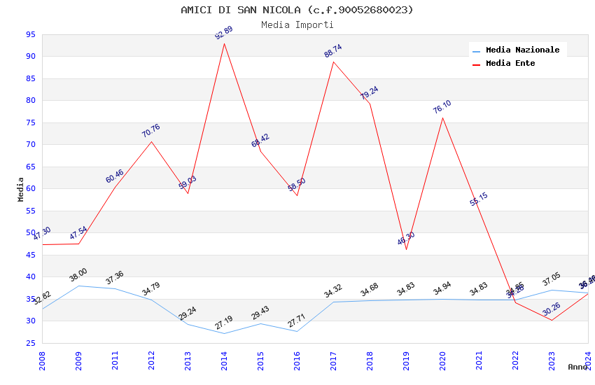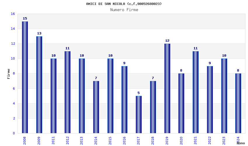 | Anno | Firme | Importi | Media | Naz. | Reg. | Prov. | Comu. |