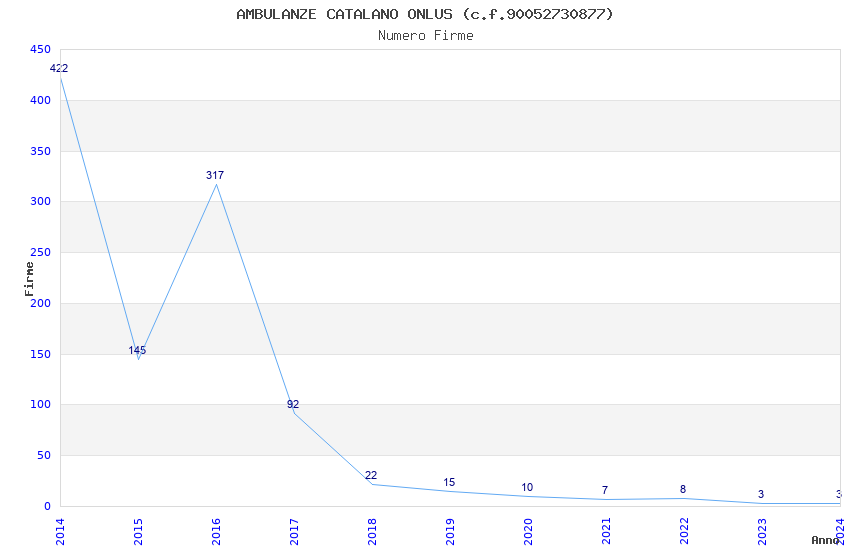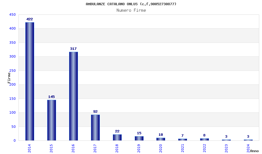 | 2014 | 422 | 6.767,43 | 16,04 | 8.003 | 424 | 75 | 1 |