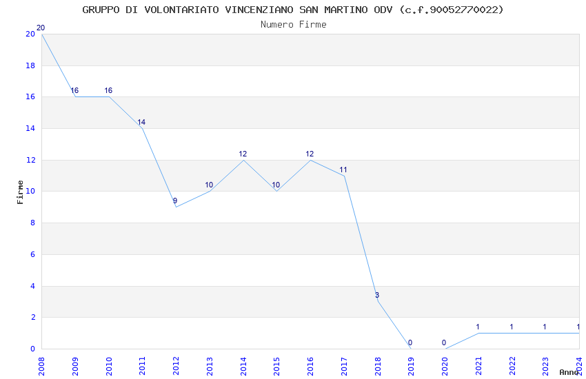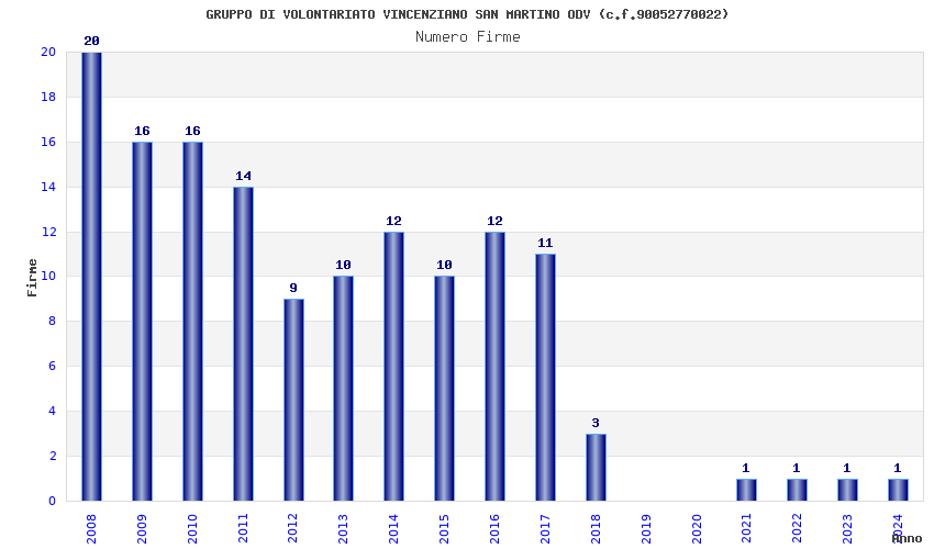 | Anno | Firme | Importi | Media | Naz. | Reg. | Prov. | Comu. |