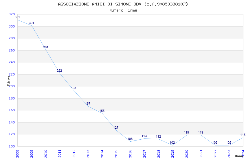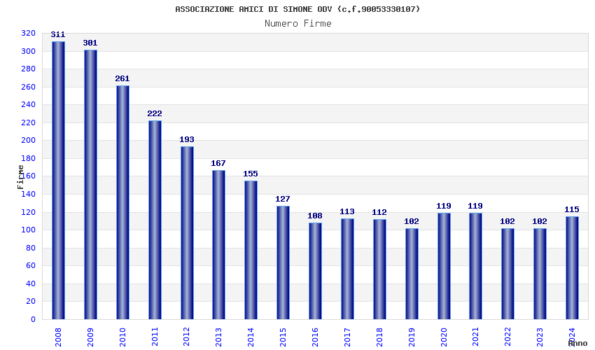 | 2008 | 311 | 8.673,69 | 27,89 | 5.190 | 160 | 123 | 4 |