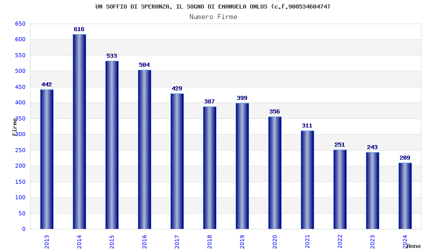 | Anno | Firme | Importi | Media | Naz. | Reg. | Prov. | Comu. |