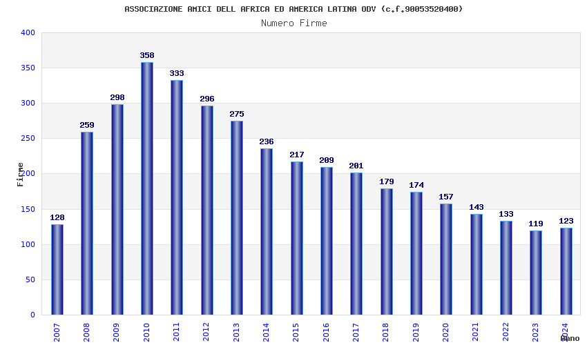 | Anno | Firme | Importi | Media | Naz. | Reg. | Prov. | Comu. |