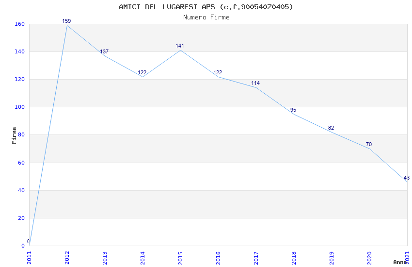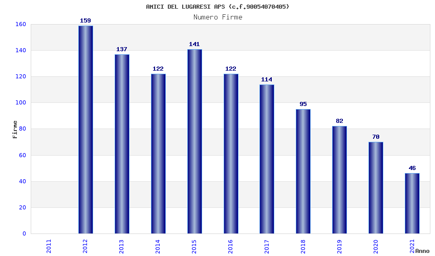 | Anno | Firme | Importi | Media | Naz. | Reg. | Prov. | Comu. |