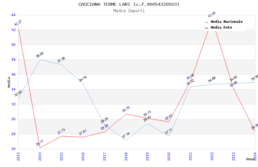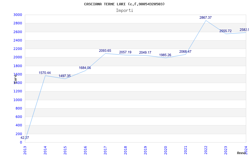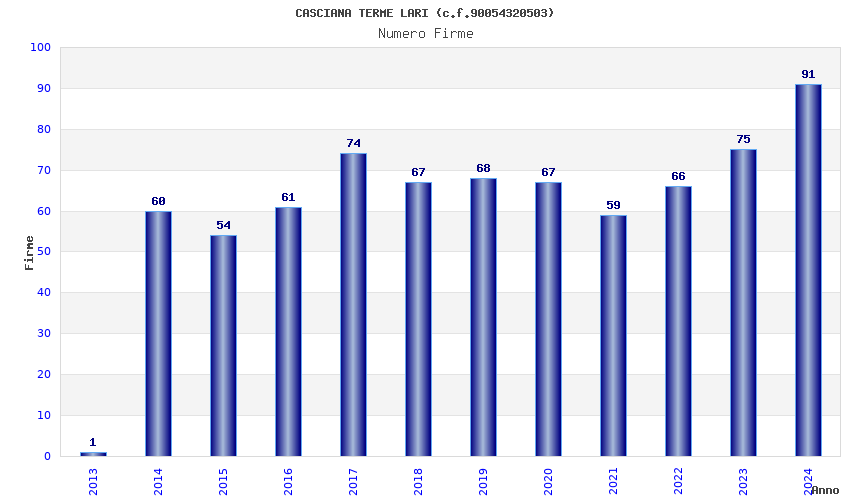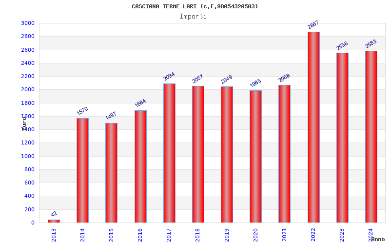 | Anno | Firme | Importi | Media | Naz. | Reg. | Prov. | Comu. |