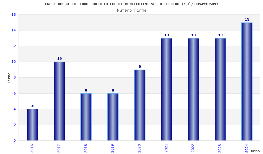 | Anno | Firme | Importi | Media | Naz. | Reg. | Prov. | Comu. |