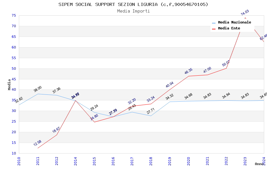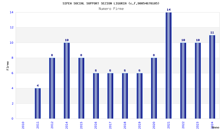 | Anno | Firme | Importi | Media | Naz. | Reg. | Prov. | Comu. |
