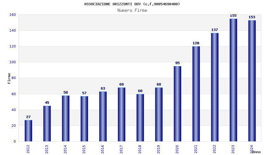 | Anno | Firme | Importi | Media | Naz. | Reg. | Prov. | Comu. |