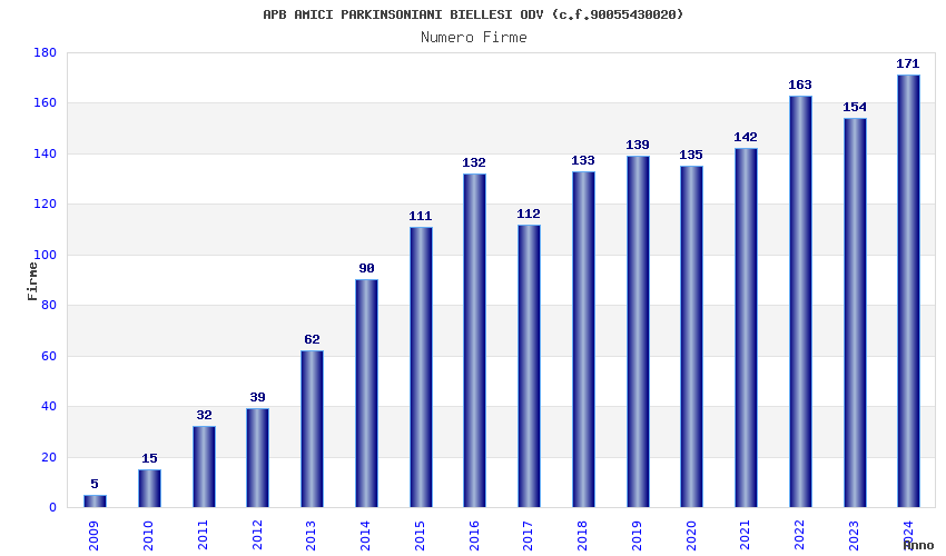 | Anno | Firme | Importi | Media | Naz. | Reg. | Prov. | Comu. |