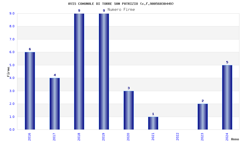 | Anno | Firme | Importi | Media | Naz. | Reg. | Prov. | Comu. |