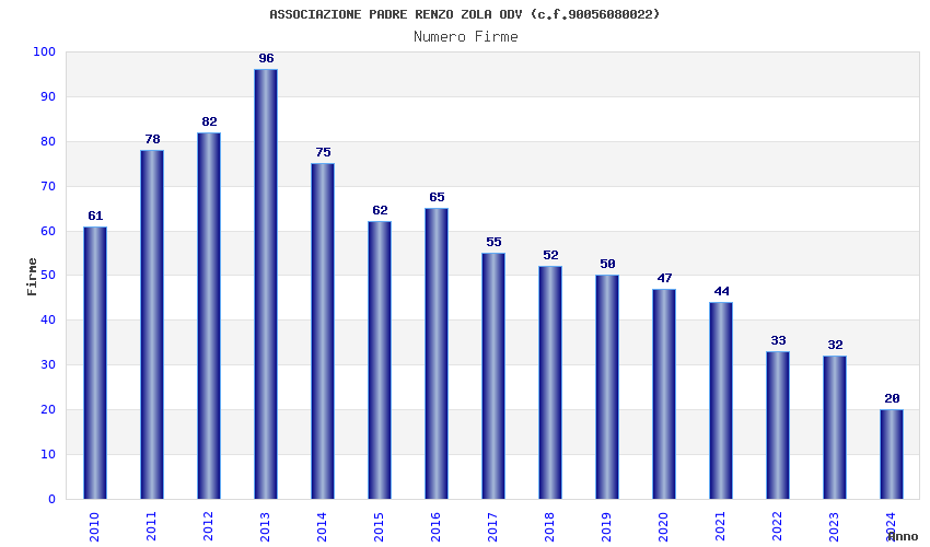 | Anno | Firme | Importi | Media | Naz. | Reg. | Prov. | Comu. |