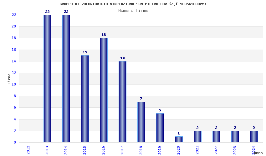 | Anno | Firme | Importi | Media | Naz. | Reg. | Prov. | Comu. |