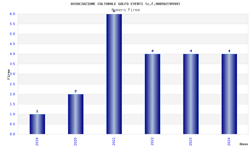 | Anno | Firme | Importi | Media | Naz. | Reg. | Prov. | Comu. |