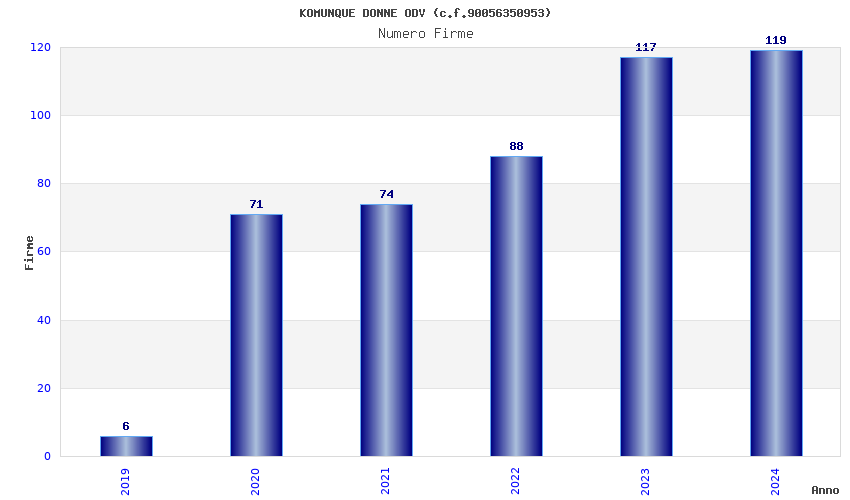 | Anno | Firme | Importi | Media | Naz. | Reg. | Prov. | Comu. |