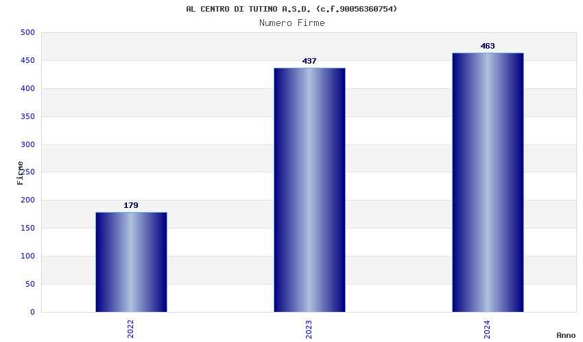 | Anno | Firme | Importi | Media | Naz. | Reg. | Prov. | Comu. |
