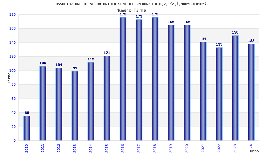 | Anno | Firme | Importi | Media | Naz. | Reg. | Prov. | Comu. |
