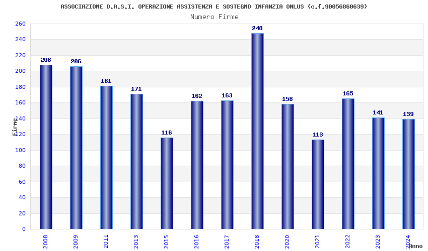 | Anno | Firme | Importi | Media | Naz. | Reg. | Prov. | Comu. |