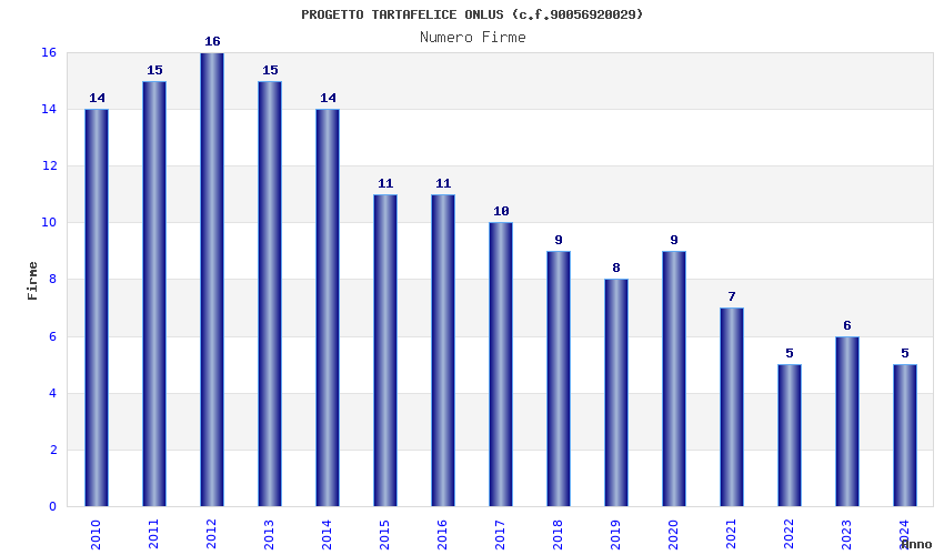| Anno | Firme | Importi | Media | Naz. | Reg. | Prov. | Comu. |