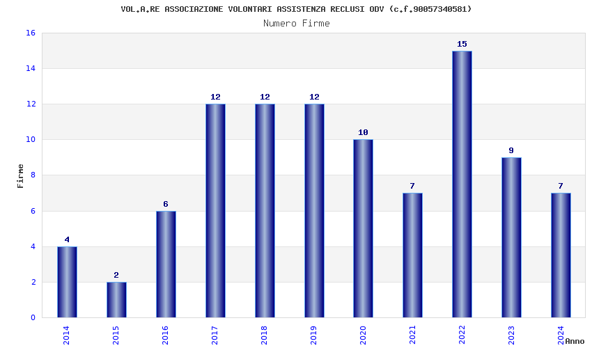 | Anno | Firme | Importi | Media | Naz. | Reg. | Prov. | Comu. |