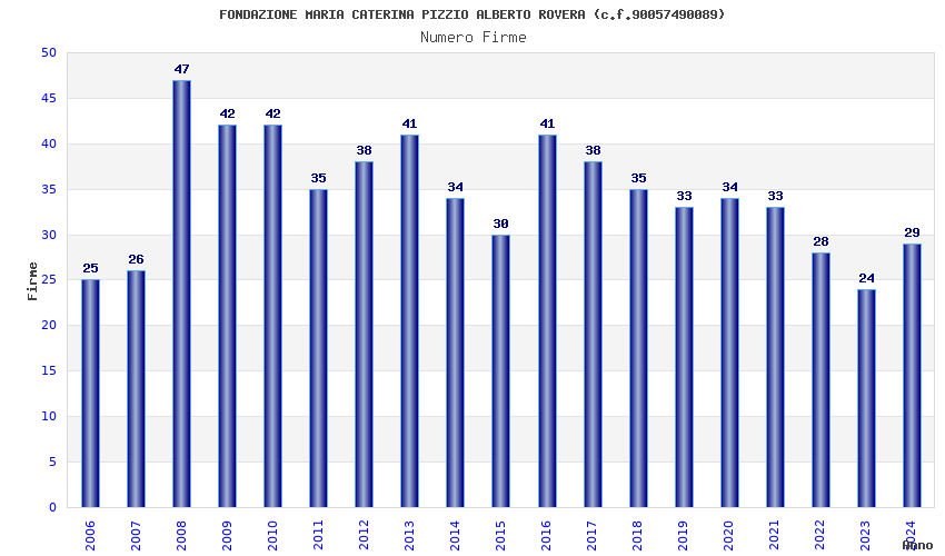 | Anno | Firme | Importi | Media | Naz. | Reg. | Prov. | Comu. |