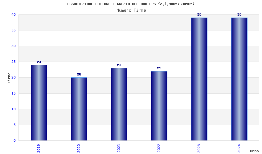 | Anno | Firme | Importi | Media | Naz. | Reg. | Prov. | Comu. |