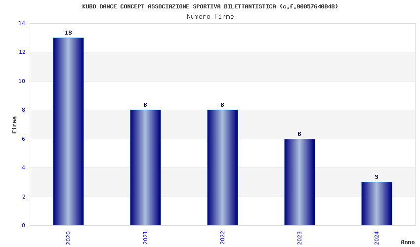 | Anno | Firme | Importi | Media | Naz. | Reg. | Prov. | Comu. |