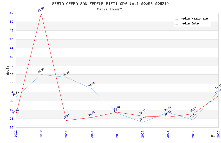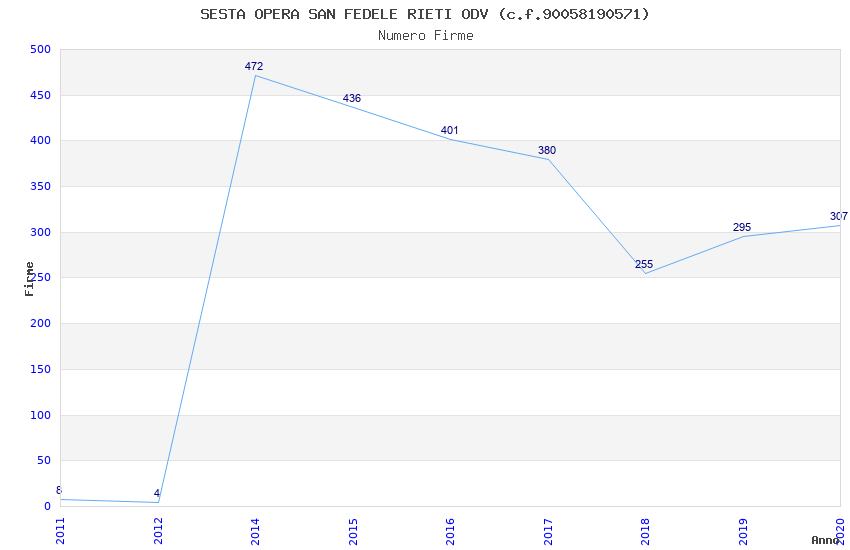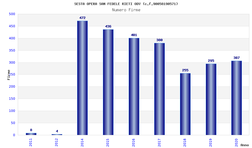 | Anno | Firme | Importi | Media | Naz. | Reg. | Prov. | Comu. |