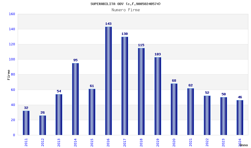 | Anno | Firme | Importi | Media | Naz. | Reg. | Prov. | Comu. |