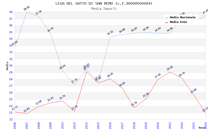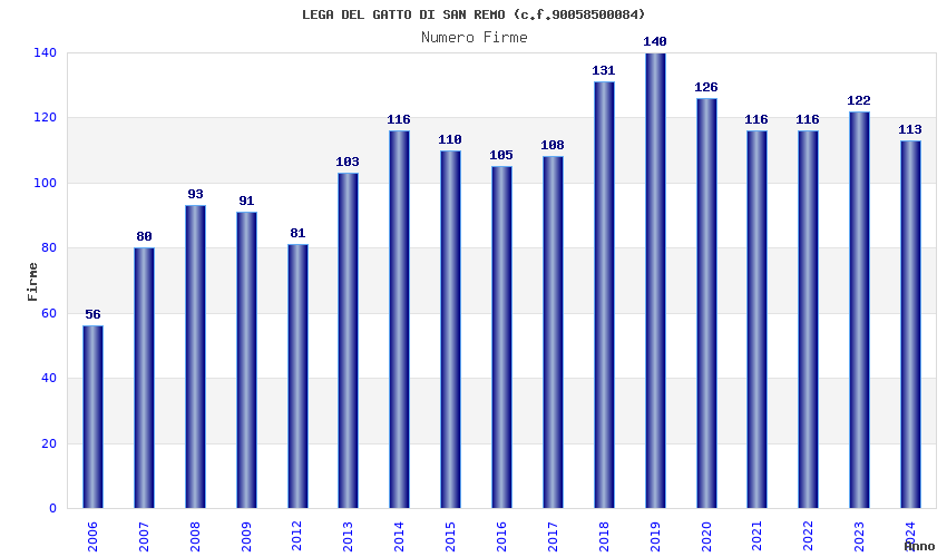 | Anno | Firme | Importi | Media | Naz. | Reg. | Prov. | Comu. |