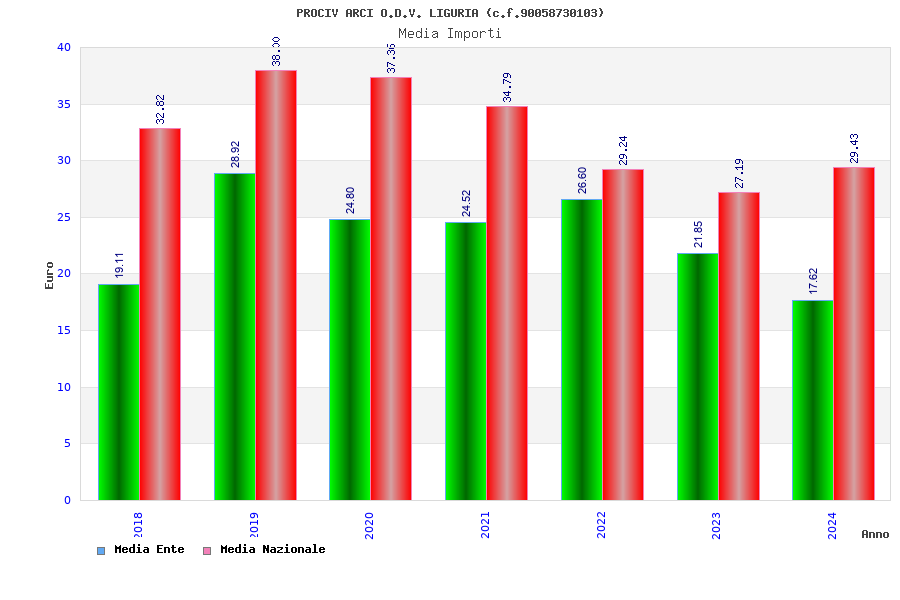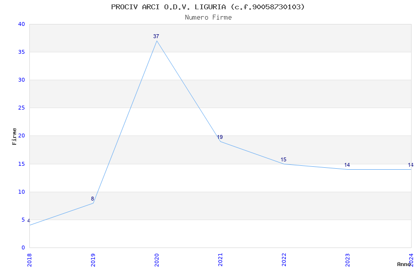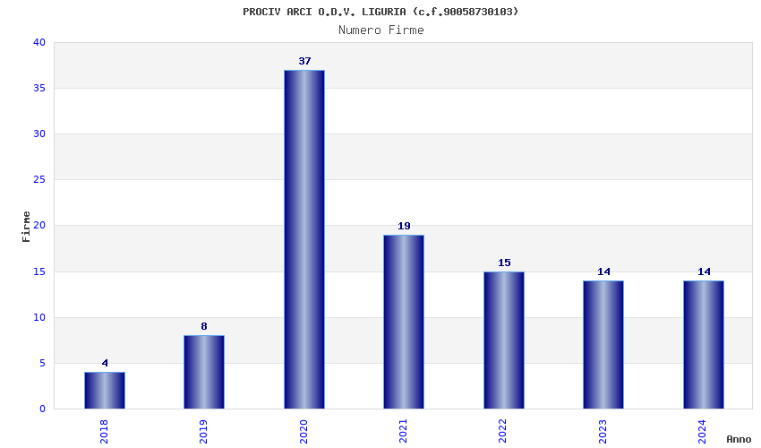 | Anno | Firme | Importi | Media | Naz. | Reg. | Prov. | Comu. |