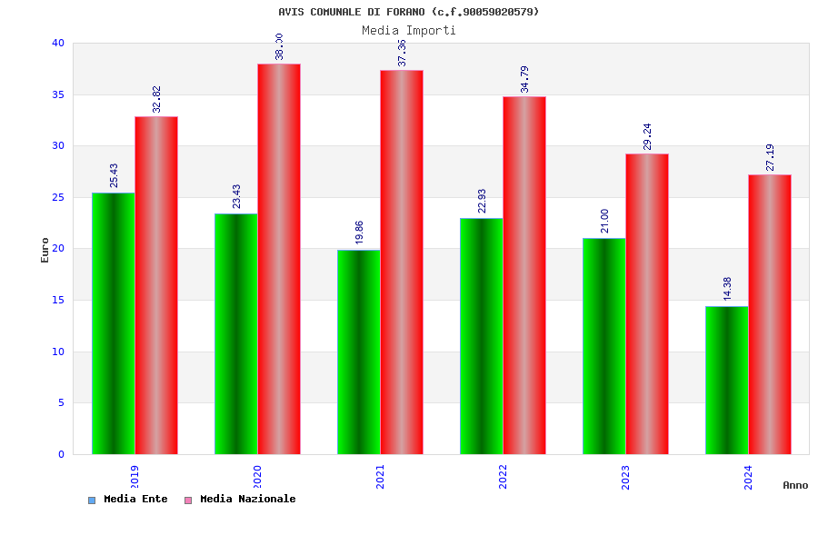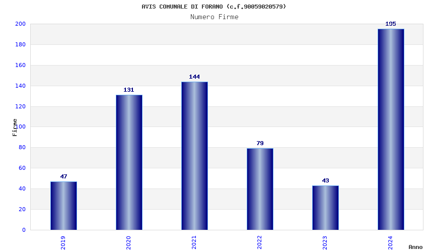 | Anno | Firme | Importi | Media | Naz. | Reg. | Prov. | Comu. |