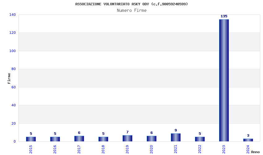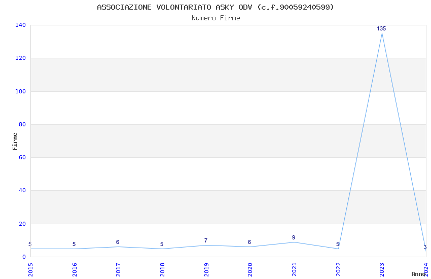 | 2023 | 135 | 2.032,98 | 15,06 | 23.345 | 2.362 | 124 | 1 |