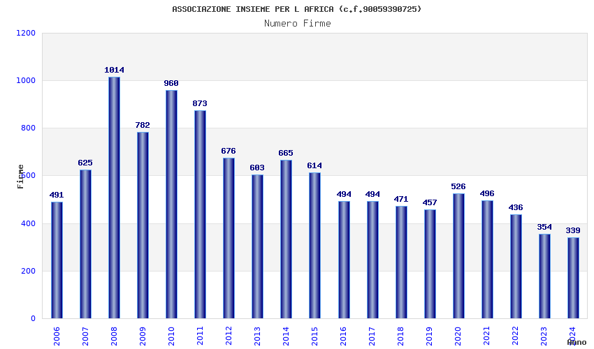 | Anno | Firme | Importi | Media | Naz. | Reg. | Prov. | Comu. |
