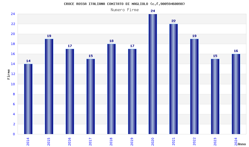 | Anno | Firme | Importi | Media | Naz. | Reg. | Prov. | Comu. |