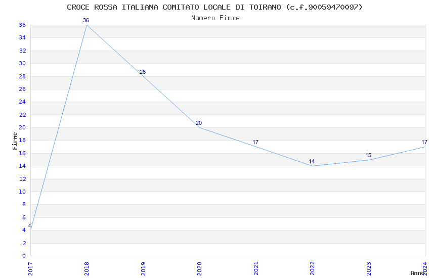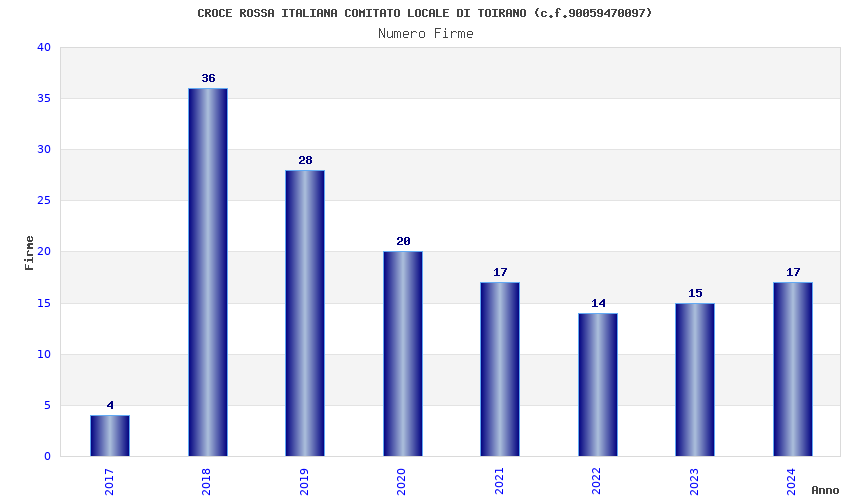 | Anno | Firme | Importi | Media | Naz. | Reg. | Prov. | Comu. |