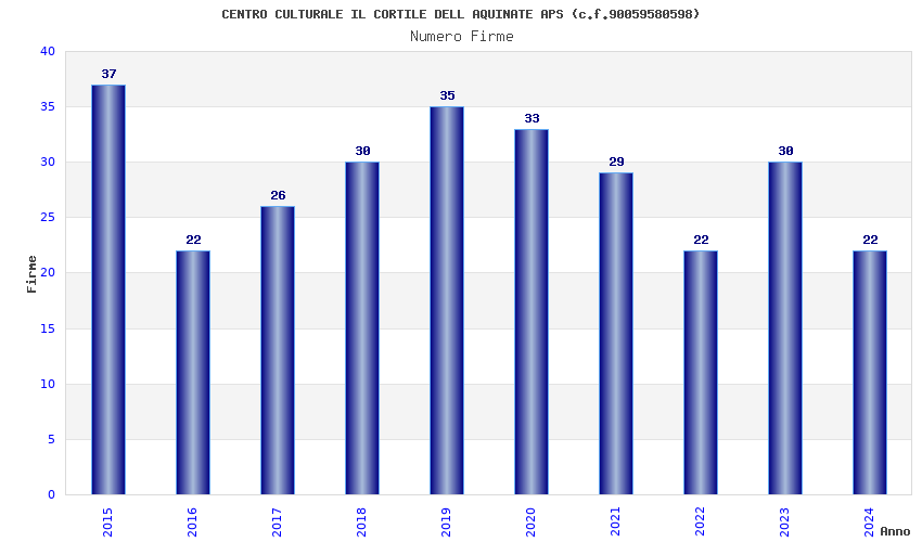 | Anno | Firme | Importi | Media | Naz. | Reg. | Prov. | Comu. |