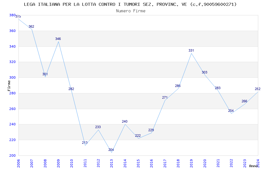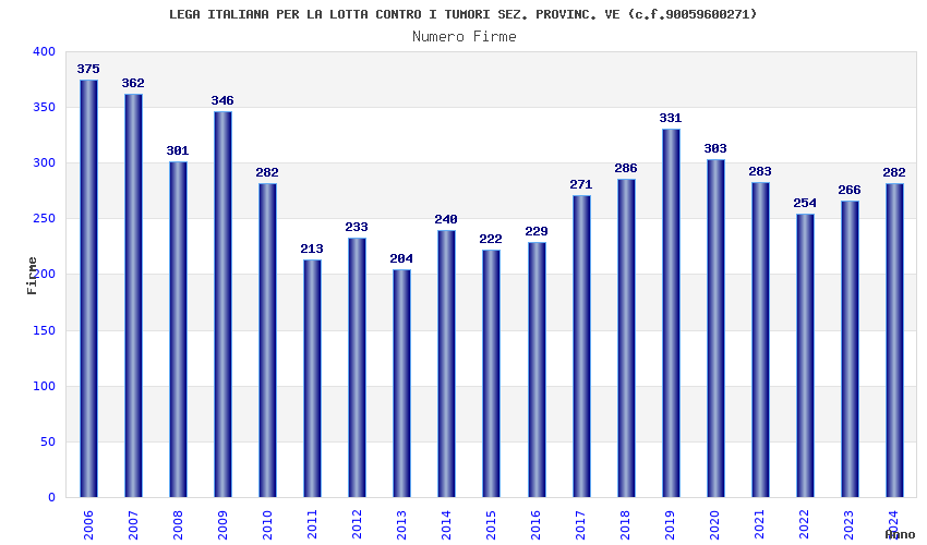 | Anno | Firme | Importi | Media | Naz. | Reg. | Prov. | Comu. |