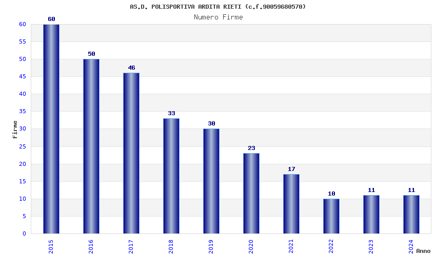 | Anno | Firme | Importi | Media | Naz. | Reg. | Prov. | Comu. |