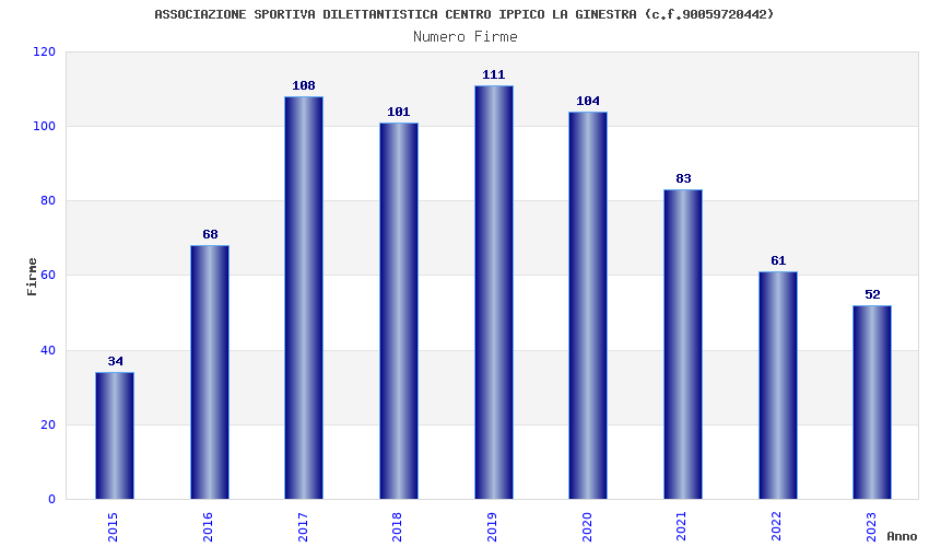 | 2023 | 52 | 2.343,30 | 45,06 | 21.035 | 509 | 41 | 2 |