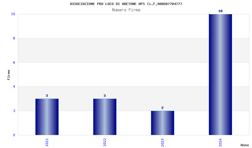 Anno Firme Importi Media Naz. Reg. Prov. Comu.