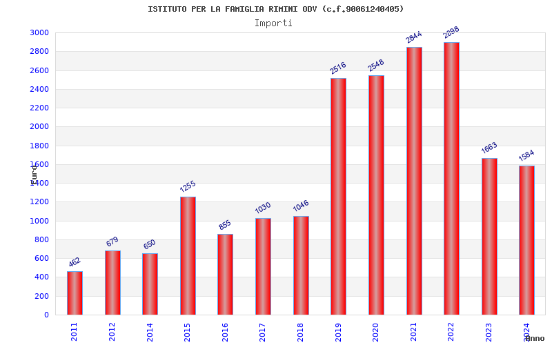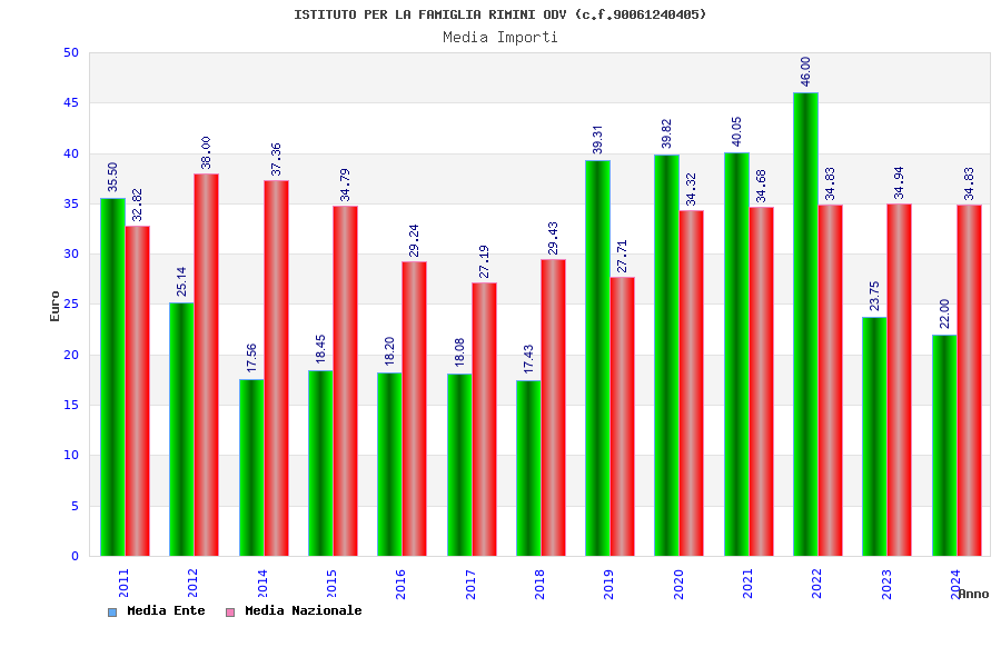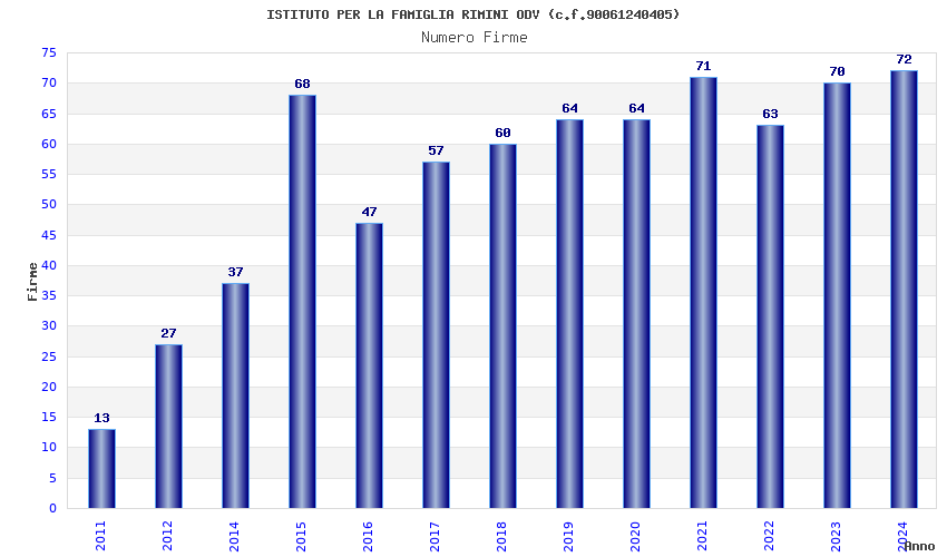 | Anno | Firme | Importi | Media | Naz. | Reg. | Prov. | Comu. |