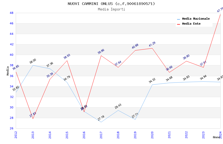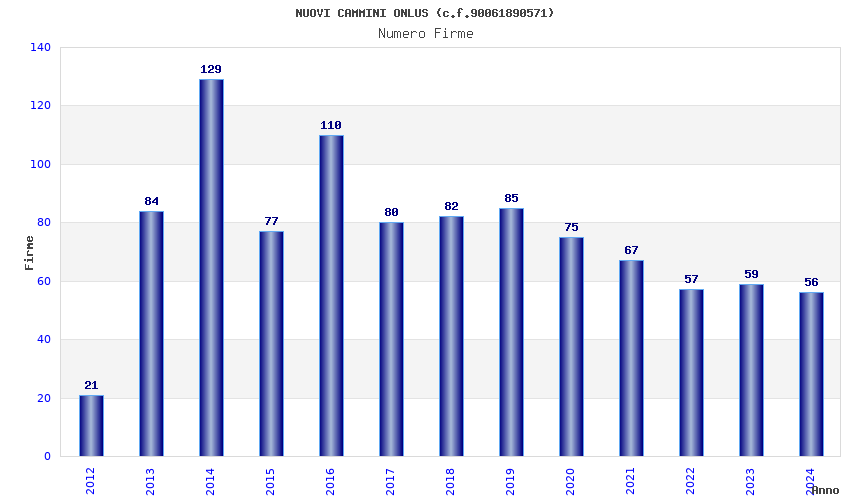 | Anno | Firme | Importi | Media | Naz. | Reg. | Prov. | Comu. |